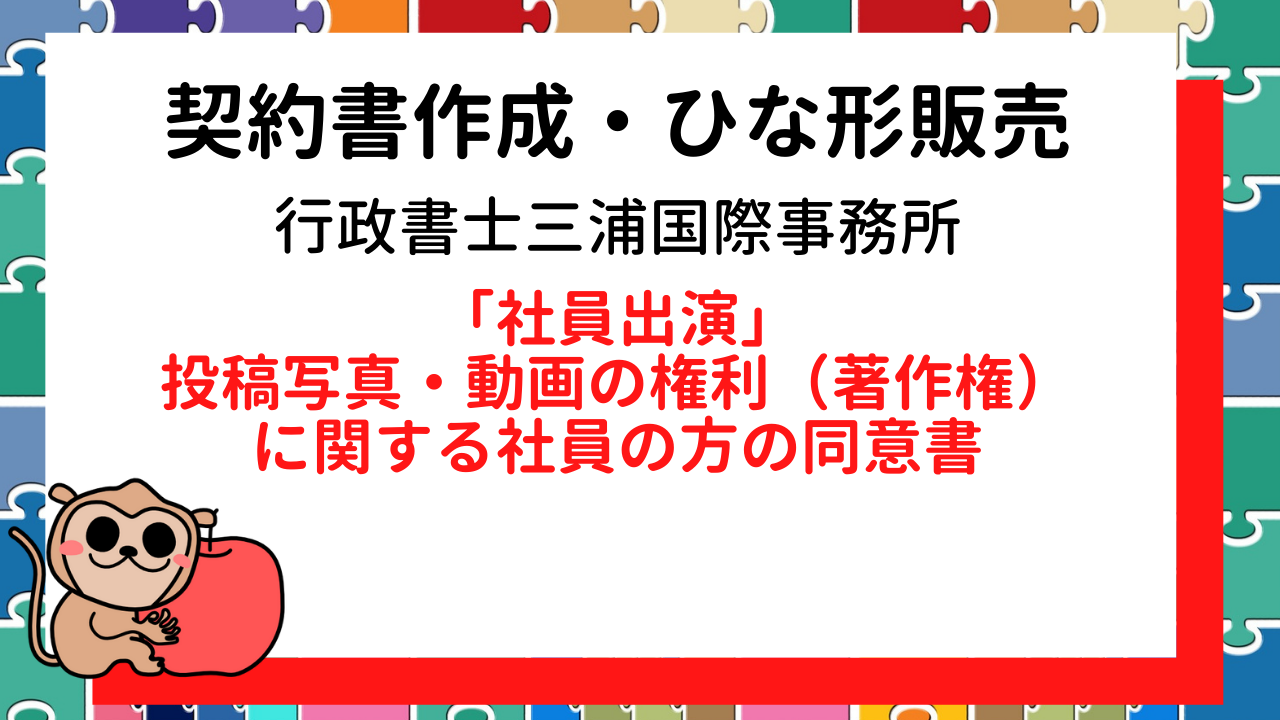 同意書 「社員出演」投稿写真・動画の権利(著作権)に関する社員の方の同意書2022.09.03※本記事のご内容は、当事務所への実際のご相談内容を基に、個人情報保護等の観点から一部内容をご変更をさせていただき、構成しております。 [word_balloon id=”3″ size=̶...