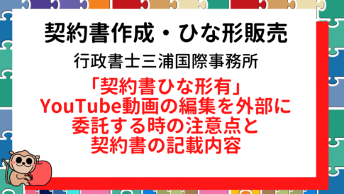 YouTubeこちらの記事は、当事務所(行政書士三浦国際事務所)への実際のご相談内容を一部変更して構成しています。 ・YouTube動画の編集を外部に委託する時の注意点 ・YouTube動画の編集を、外部に委託する時に締結する契約書に...