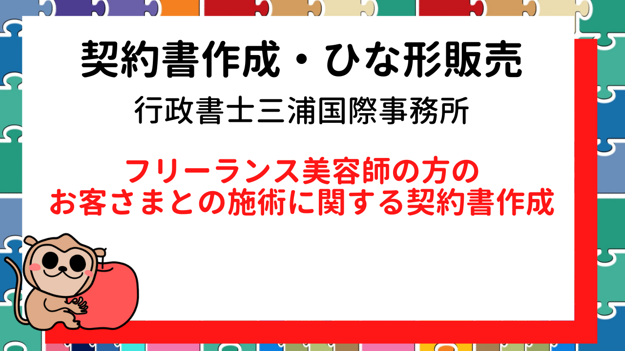 契約書ひな形 「契約書ひな型有」フリーランス美容師の方の施術に関する契約書について2023.12.04※本記事のご内容は、当事務所への実際のご相談内容を基に、個人情報保護等の観点から一部内容をご変更をさせていただき、構成しております。 フリーランス美容師の方からのお客さまとのご契約書についてのご相談 フリーランス美容師の...