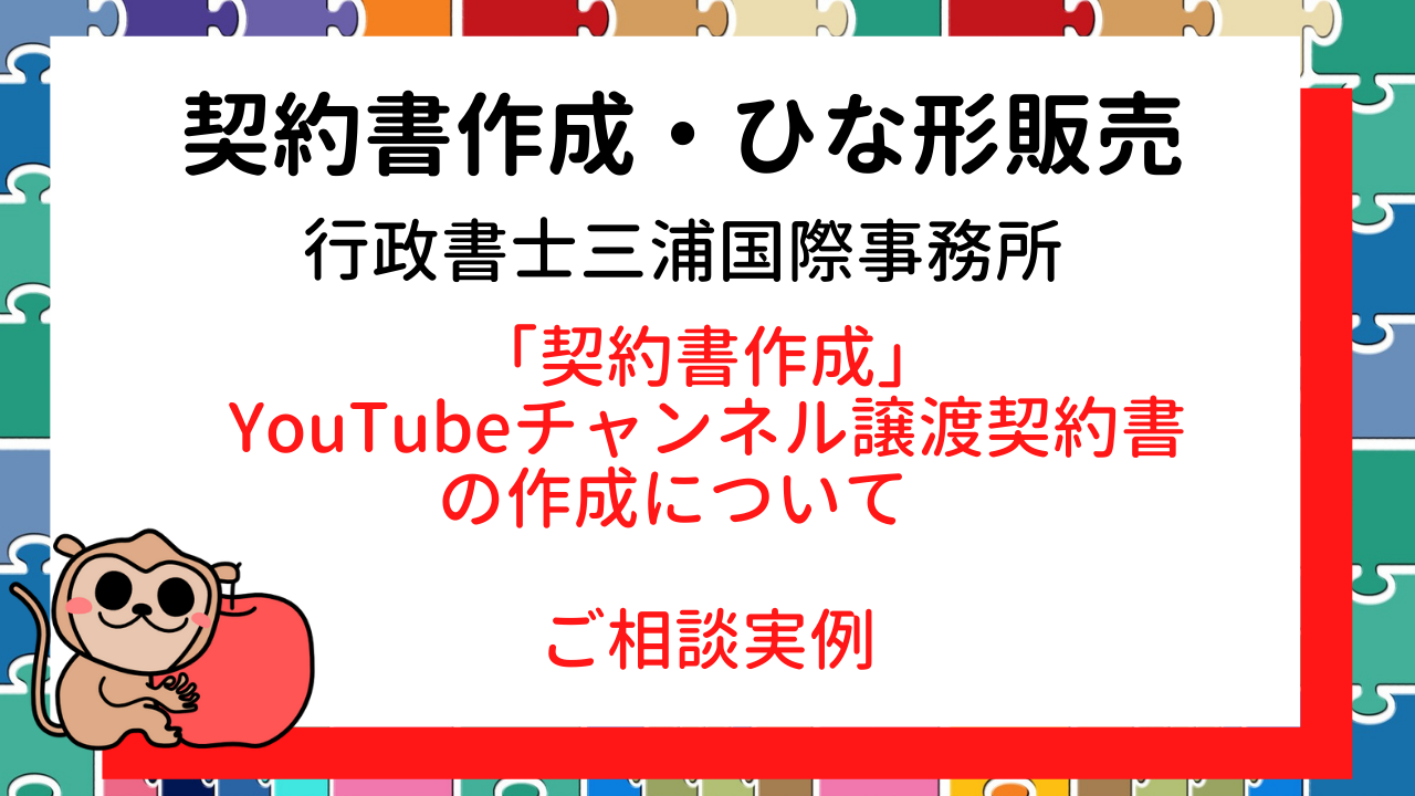 YouTubeこちらの記事は、当事務所(行政書士三浦国際事務所)への実際のご相談内容を一部変更して構成しています。 ・YouTube動画の編集を外部に委託する時の注意点 ・YouTube動画の編集を、外部に委託する時に締結する契約書に...